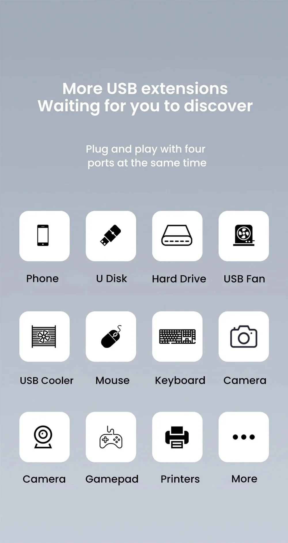 Easily connect multiple USB devices simultaneously with our USB 3.0 Hub! Boasting fast transmission speeds and a compact size, it's the perfect add-on for your laptop.