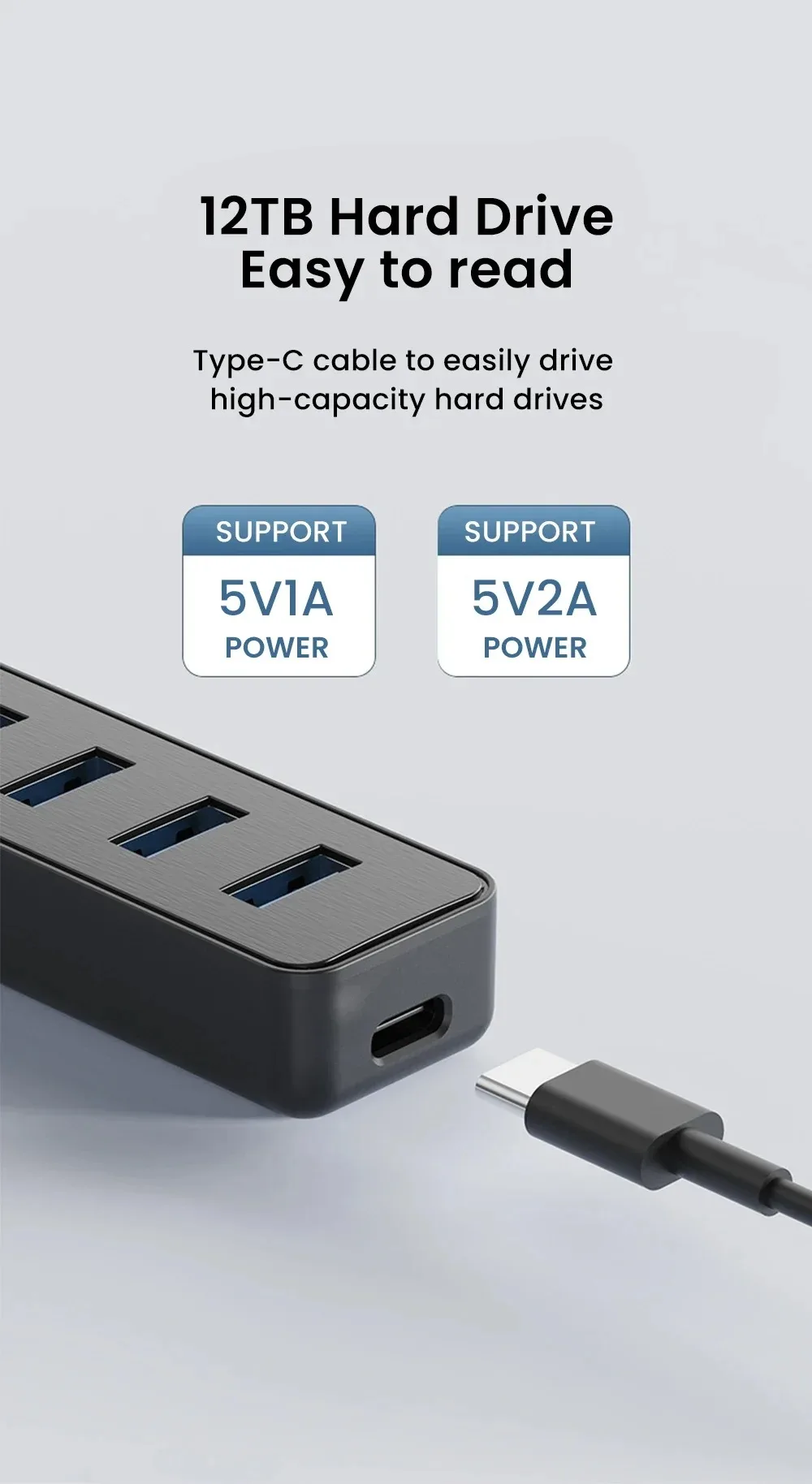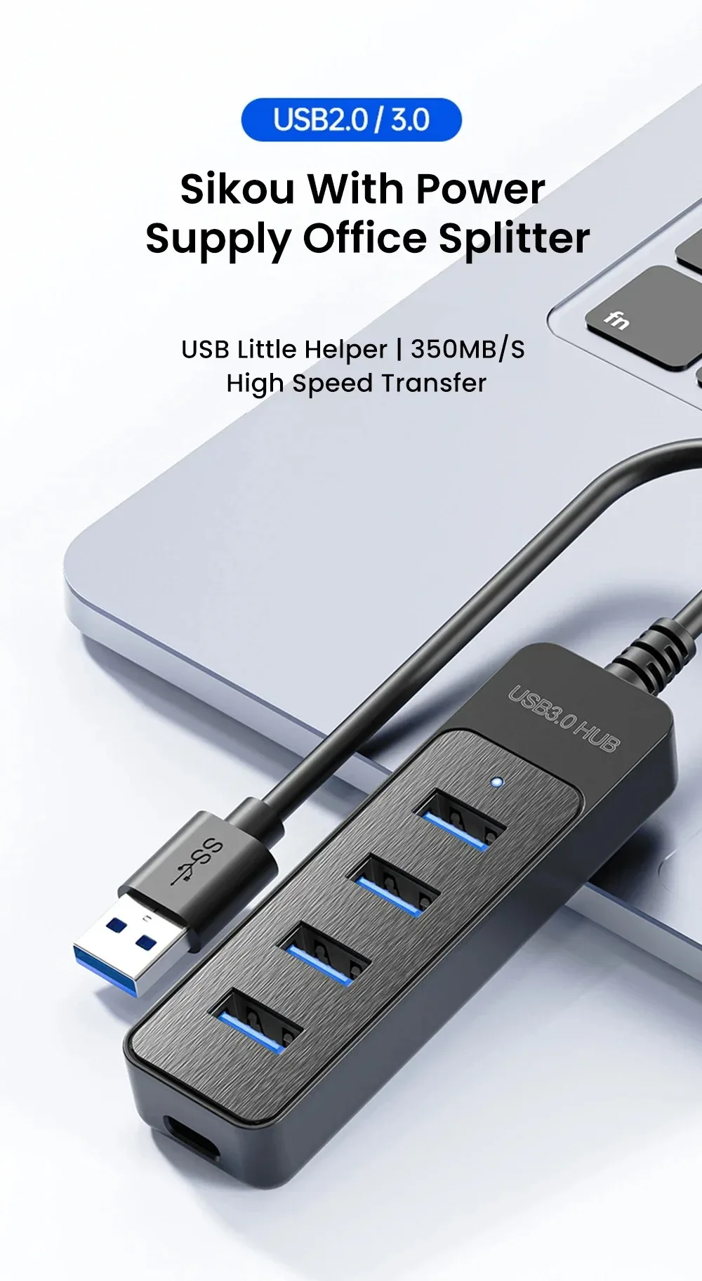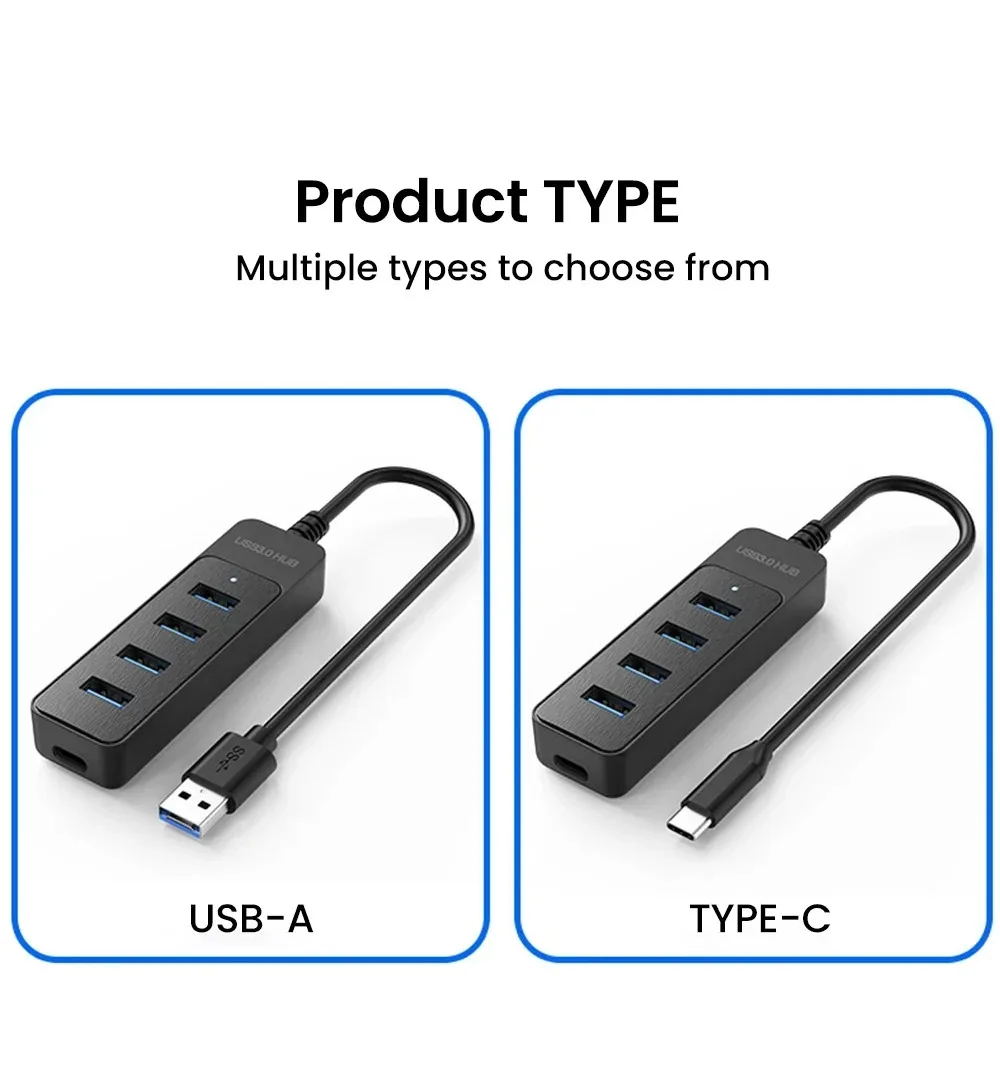 4 Ports USB Splitter Hub Wth USB / Type-C Cable USB HUB 3.0 High Speed Multi Port Power Adapter For PC Computer Laptop Notebook