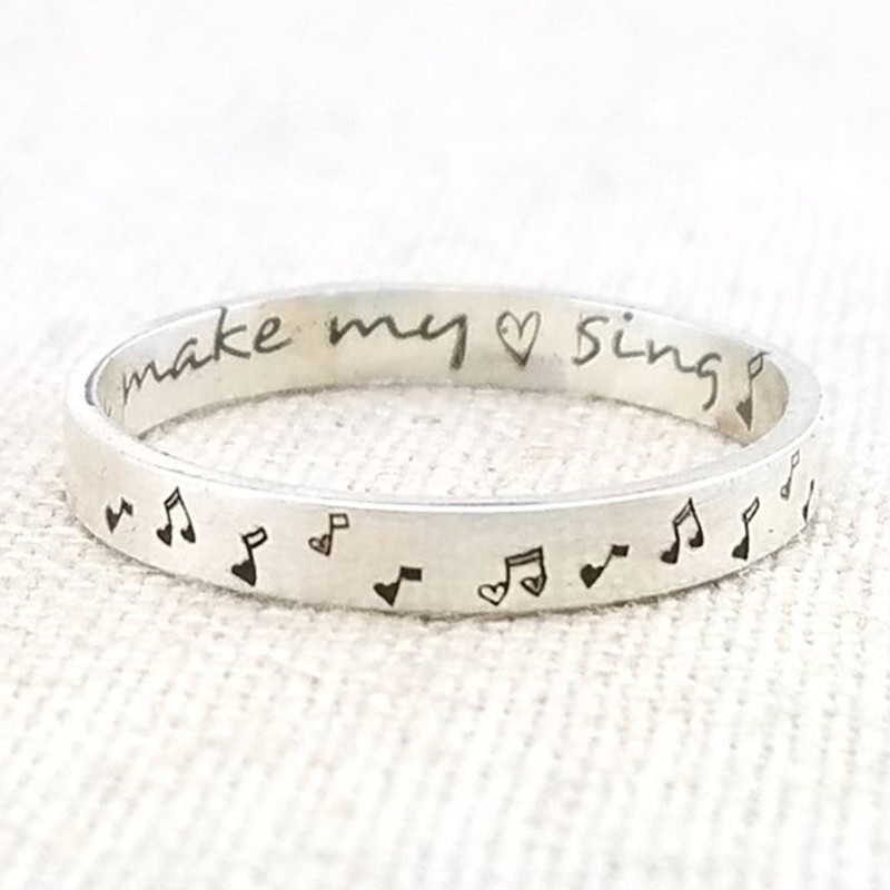 Personalized Music Note Ring – Silver Posey Ring for Wife